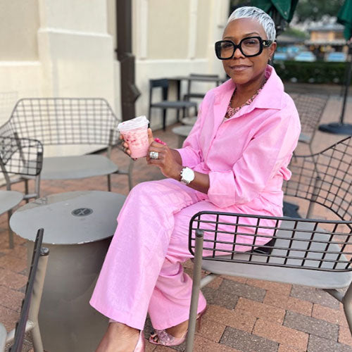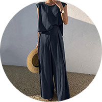 "This set is wonderful! Vibrant color and a great fabric. I plan to order another set. You can dress this outfit up or down. I love how it feels on my body. Worth the money."