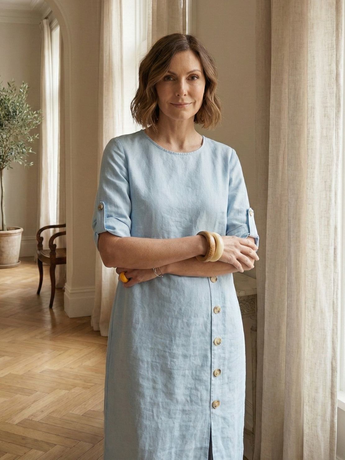 About our Fabric: Premium cotton with the elegant look of linen but softer after just three washes. Perfect mid-weight for year-round wear - breathable in heat yet substantial enough for cooler days. Natural fibers for women who appreciate both comfort and style.