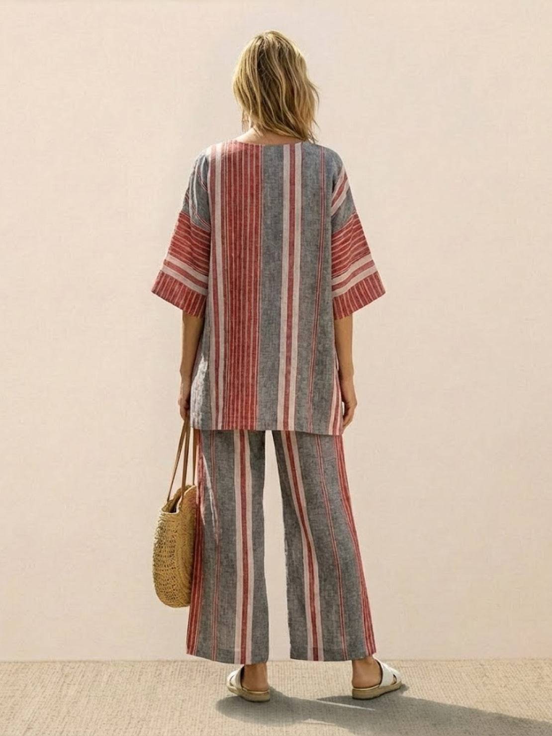 Yes, this is a complete matching two-piece set that includes both the tunic-style top and wide-leg pants.