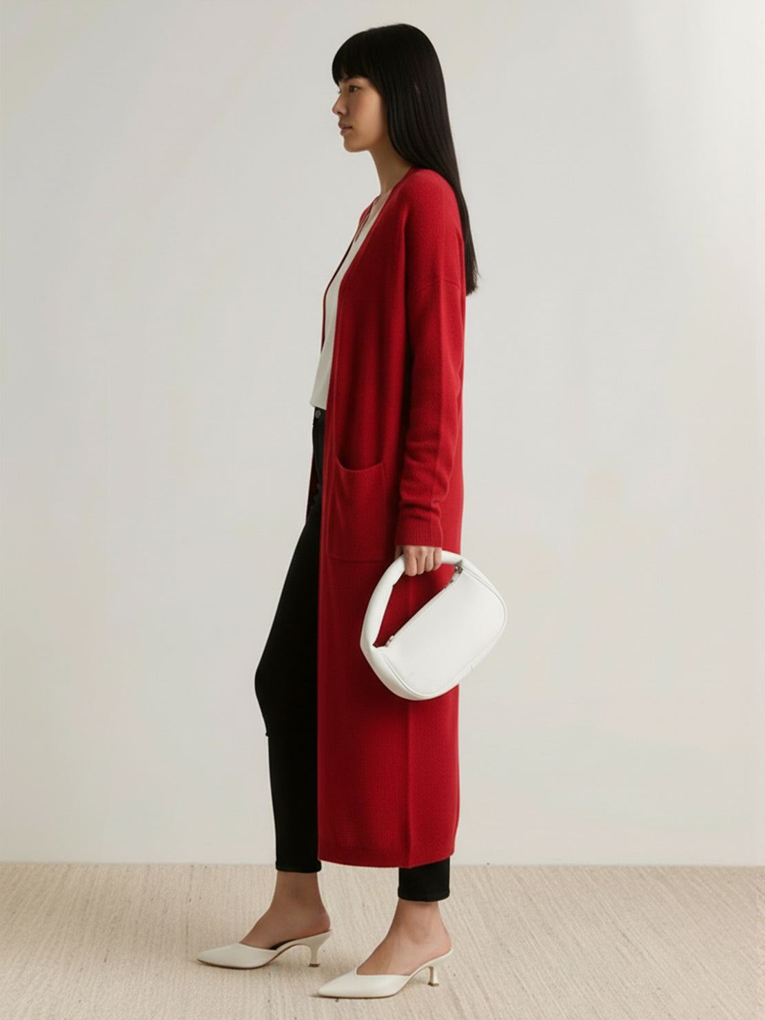 The open-front design creates a polished drape that layers beautifully over dresses, blouses, and knit sets. Natural temperature regulation keeps you comfortable all day in fall, winter, and early spring.